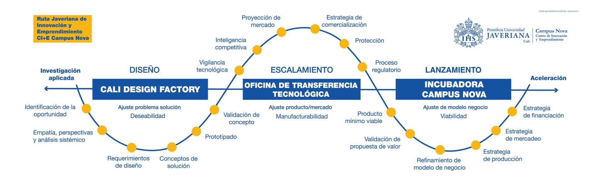 Cali Design Factory, Oficina de Transferencia de Tecnologías e Incubadora Campus Nova, conforman una ruta que va desde la ideación y la experimentación, hasta la incubación.